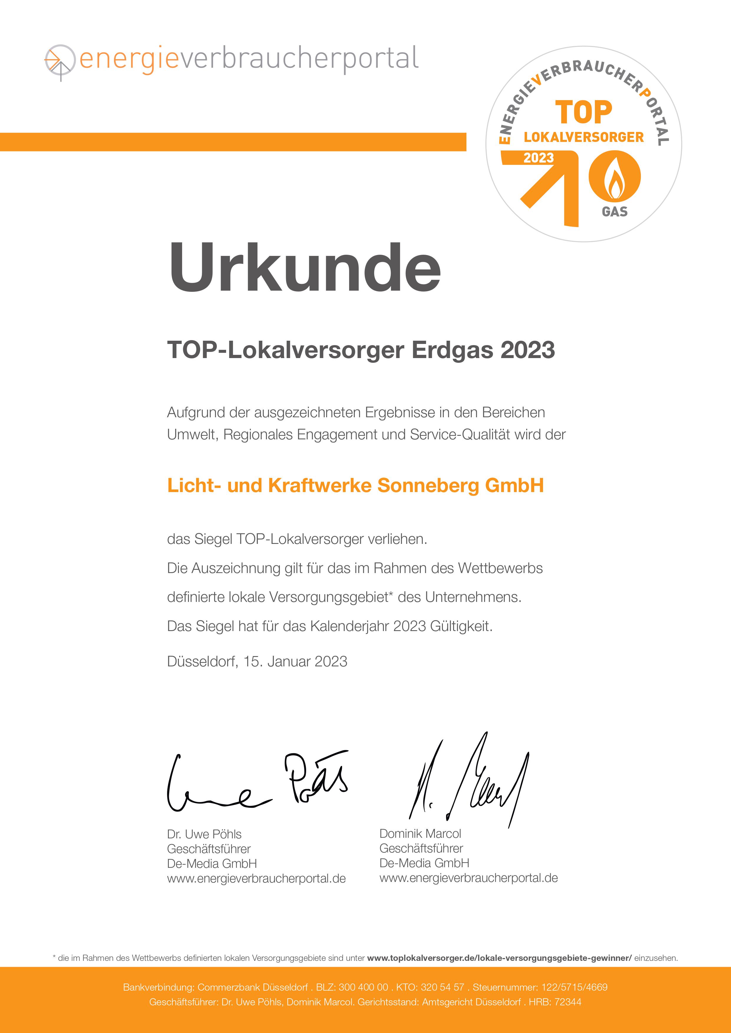 Was bedeutet die Auszeichnung TOP-Lokalversorger?